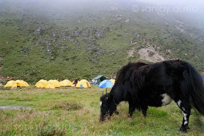 The yaks came pretty close to our tents at night the bull yaks fought for females and i feared they would run over our tents at night.