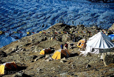 Base camp and the mighty Yalung glacier in the background.